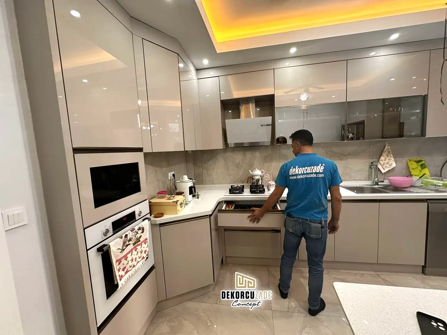 Bizler DekorcuZade concept olarak 100 kişilik tadilat ekibine, 25 kişilik sitelerdeki fabrikamızda ahşap ve mutfak ekibine sahibiz. Bu anlamda DekorcuZade’de sokaktan toplama usta yoktur. Ekip ve tüm ustalar kendi bünyemizde kendi ustalarımızdır. Zaman ve zamanlama yani söz verilen iş başlangıcı ve iş teslim süresi çok önemlidir. Ve bizler bu konuda çok hassasız.