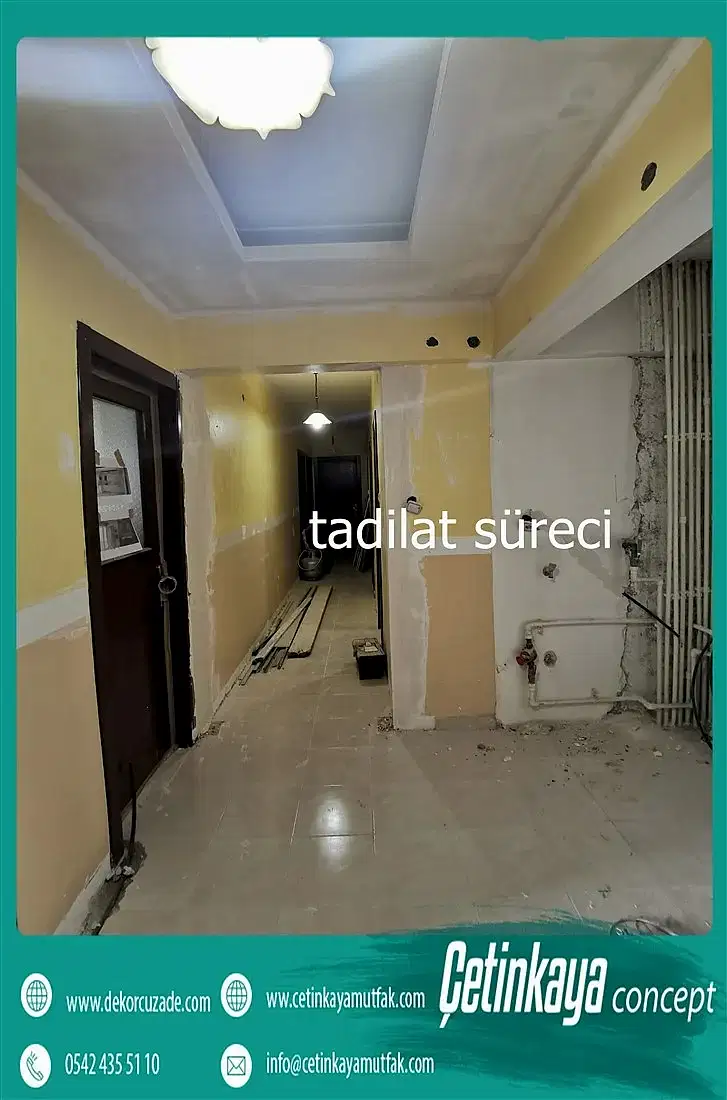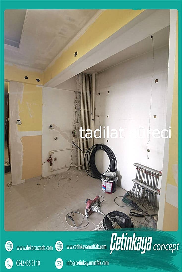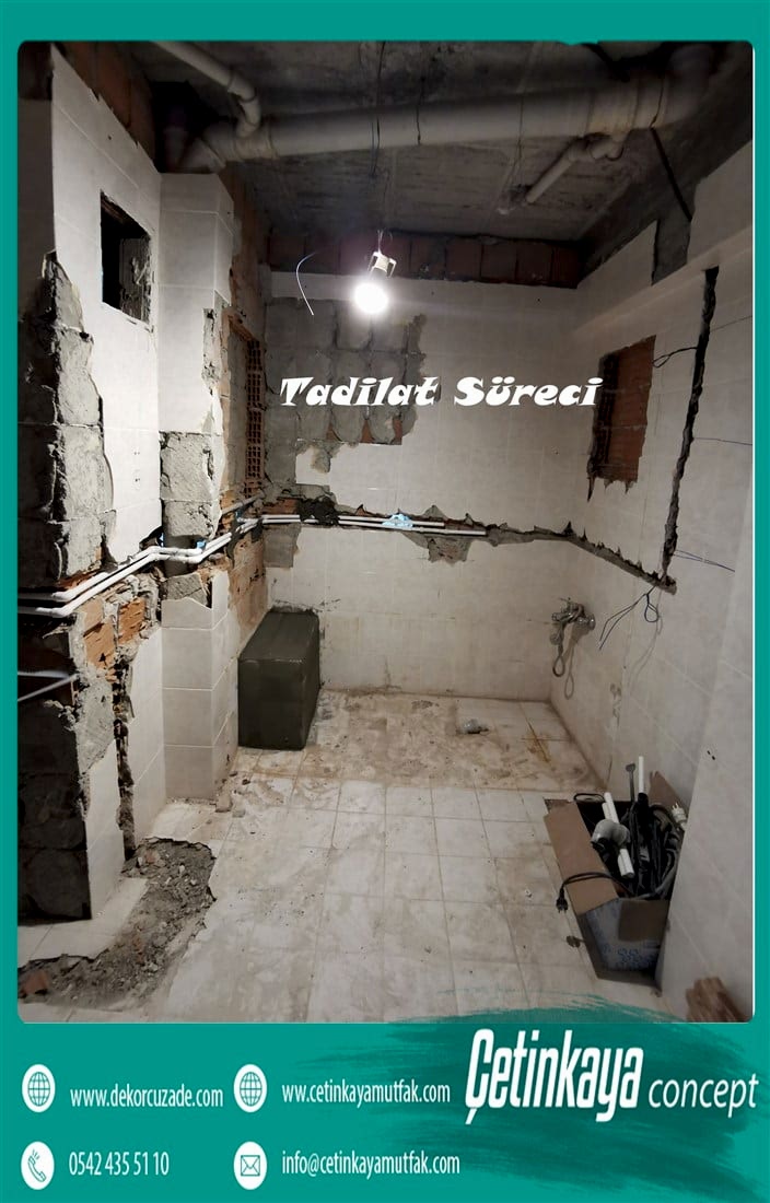 Mutfak tadilatı dikkat edilmesi gereken en hassas ortamlardan biridir. Özellikle bayanların en çok vakit geçirdiği alandır. Elektrik tesisatı ve su tesisatı bizlerin de en çok üzerinde durduğu konulardandır. Yapılırken dikkat edilmeyen noktalar daha sonralarda sizlerin başını ağrıtabilir. Beklenmedik zamanlar da size masraf çıkarabilir . Bunun yaşanmaması için mutfak tadilatında hassas davranılması gerekmektedir. Mutfağın bir diğer önemli aşaması ise dolap ve tezgah tercihi olacaktır. Evinizin boyutuna ve konumuna göre tezgahınızı seçmelisiniz. Amerikan mutfak modellerini kullanım açısından sıklıkla önerdiğimiz gibi kapalı ve ayrı mutfak modelleri içinde ferah tezgahları tercih edebilirsiniz. Mutfak dolabı seçimine geldiğinizde ise aslında temelde esas almanız gereken kendi eşyalarınız olmalıdır. Nasıl bir dolaba ihtiyacınız olduğuna eşyalarınıza bakarak karar vermelisiniz çok fazla kullandığınız tencere tava varsa bunları saklamak için kapalı kapaklı dolap sergilemeniz gereken dekoratif malzemeleriniz varsa açık kapak sayısı az mutfak tercih edeblirsiniz, bu kararı verdikten sonra işiniz oldukça kolay olacaktır. Şimdi sizler için baştan yapılmış evlerin öncesi ve sonrası görsellerini inceleyelim ;