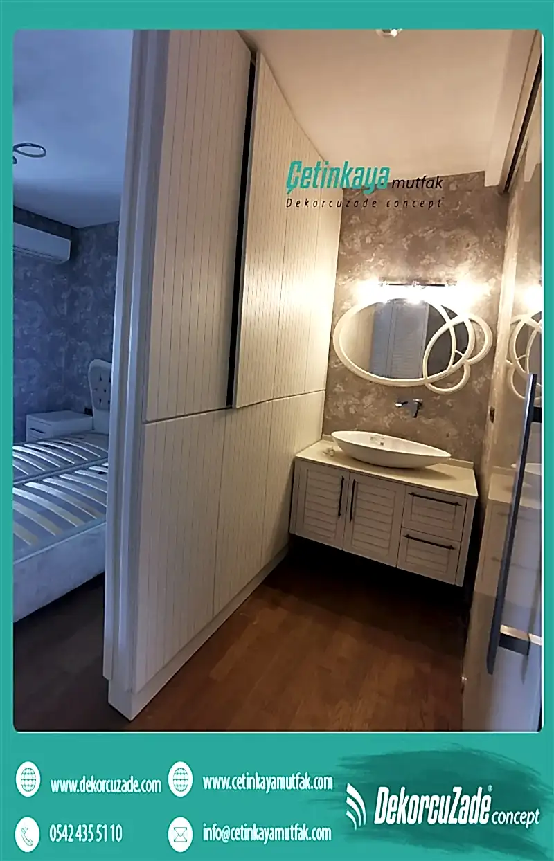 Dolap uygulaması mutfağınız yada banyonuz için ayrı bir özen gösterilmesi gereken husustur. Suya dayanıklı olan dolap modelleri ve şişme yapmayan malzemeler seçilmelidir . mdf kaplamalı, lake kaplama olan dolapları tercih edebilirsiniz. Suntalam tercih etmenizi önermeyiz Aksi takdirde özenle seçtiğiniz ve kullanmak istediğiniz dolaplarınız şişme veya dökülme yapabilir. Buda sizi tekrardan dolap yapımına sürüklemek zorunda bırakacaktır. Bu sizi ve ailenizi hem masrafa hemde evinizdeki düzenin tekrardan bozulmasına sebep olacaktır. Ev tadilatınızda sorun yaşamamak için daha kaliteli ve kullanışlı malzeme seçmenizi öneririz bu konuda ücretsiz danışmanlık yapıyoruz istediğiniz konuda bizden bilgi alabilirsiniz .Ankara Anahtar Teslim Villa Ev Ofis Tadilatı ve Dekorasyon