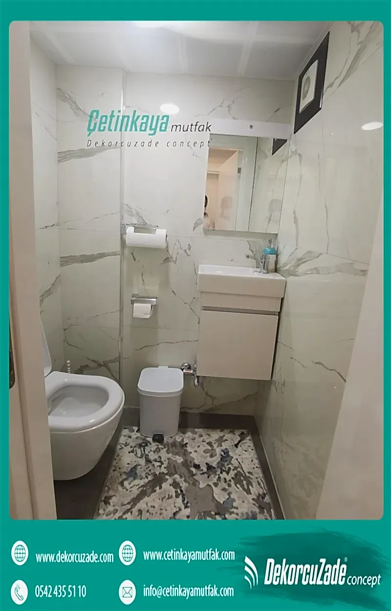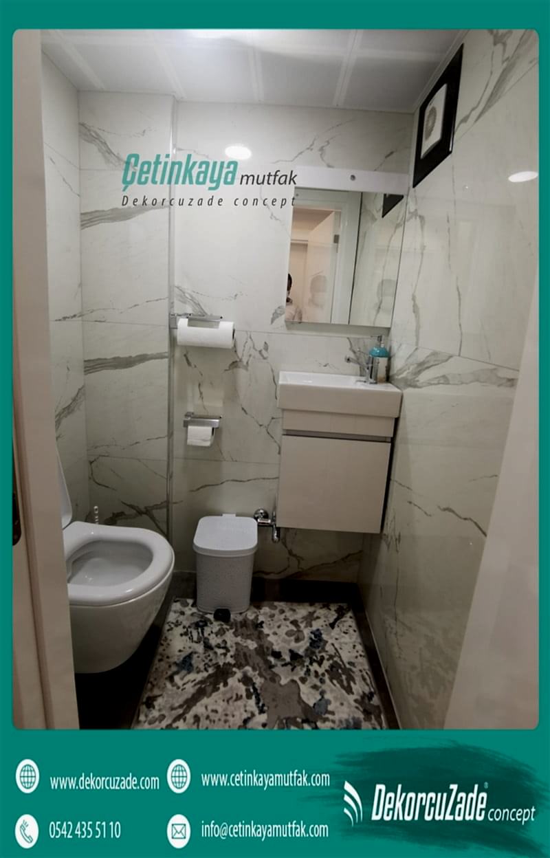 Elektrik ve su tesisatında ki hassasiyeti banyonuz da da göstermelisiniz ki sizi yarı yolda bırakmasın. Banyo tadilatından bir süre sonra komşunuzdan gelecek olan eleştirisel sözleri duymak istemiyor, yaptırmış olduğunuz dolapların şişmemesi ve renk değiştirmemesini istiyorsanız banyonuzun su ve elektrik tesisatına özen göstermelisiniz. Küçük banyo dekorasyonu için önerilerimiz açık renklerde dolaplar ve renkli aksesuarlar olacaktır . Küveti, lavaboyu ve klozetinizi banyonuzun konumuna göre seçerek aradığınız bütünlüğü ve pratikliği sağlayabilirsiniz.