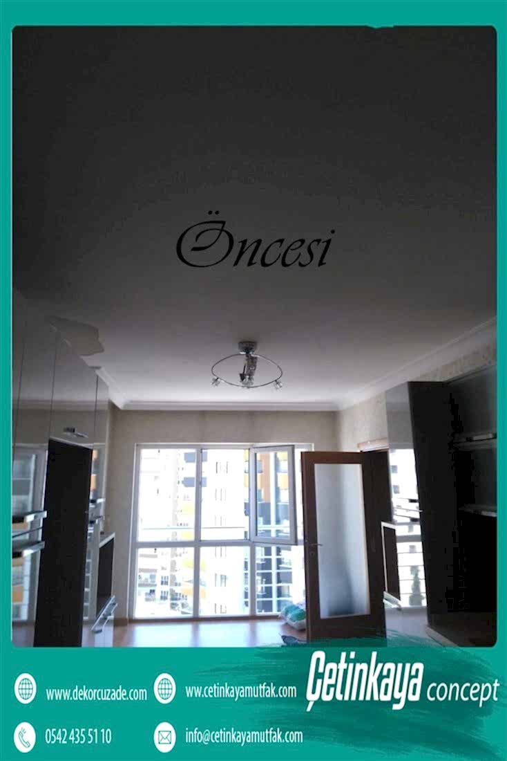 komple daire tadilatıTavanlarda alçıpan, asma tavan, barisol, katonpiyer vb. dekorasyonu tamamlayıcı ürünler kullanılabilir. Beyaz tavan boyası ile uygulama sonlandırılır.
