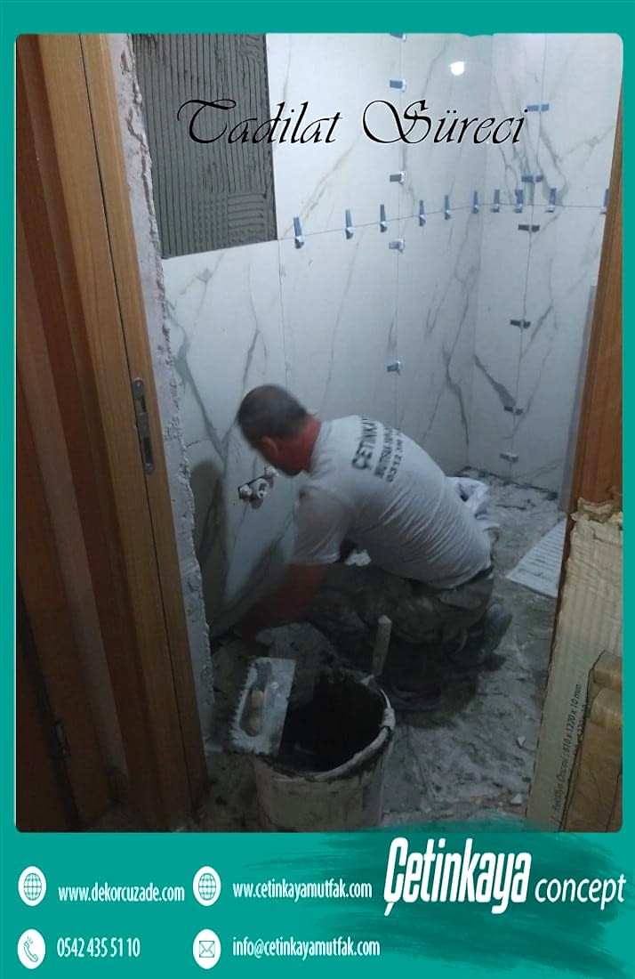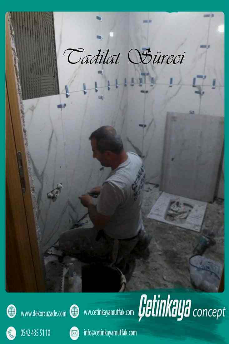 komple tadilat fiyatları Banyolar da mutfaklar gibi ıslak hacim alanlarından olduğu için öncelikle zeminde su yalıtım uygulaması yapılmalıdır.Duvar uygulamalarında yeni gelişen teknolojiler sayesinde suya dayanıklı duvar kağıdı uygulaması yapılacağı gibi, fayans uygulamaları da yapılabilir. Banyo dolapları,küvet, duşakabin, lavabo ve diğer iç donatı elemanlarının kullanılabilirlik durumuna göre tekrar kullanılabilir ya da yenisi işe değiştirilir. Banyo tavanlarına yalıtımlı kaplamalar ya da suya dayanıklı özel boyalar kullanılabilir.Detaylı bilgi için banyo tadilatı sayfamızı ziyaret etmenizi tavsiye ederiz.