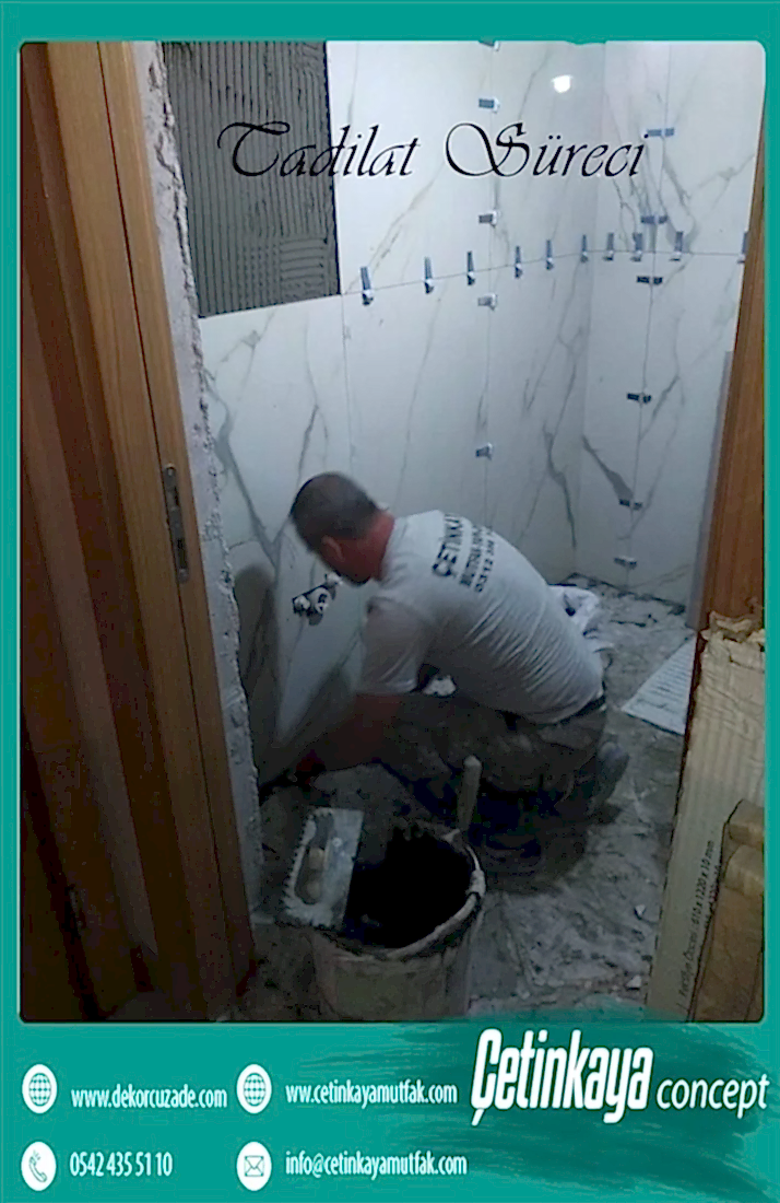 komple tadilat Mutfaklar yemek pişirme ve beslenme ihtiyaçlarımızın karşılandığı mekanlar olması dışında, değişen yaşam koşullarımız nedeniyle evde geçirdiğimiz vaktin büyük bir kısmını harcadığımız yaşam alanlarına dönüşmüştür. Daire içi ıslak hacim alanlarından olan mutfakların tadilatında öncelikli olarak su ve nemin zararlı etkilerini bertaraf eden, küf, mantar vb. oluşumunu engelleyerek hijyenik gereksinimleri karşılayan su yalıtım uygulamalarından başlanmalı, mutfak dolapları,mutfak tezgahı, iç cephe boyası, tesisat ve zemin uygulamaları ile tadilat bitirilmelidir. Detaylı bilgi için mutfak tadilatı sayfamızı ziyaret etmenizi tavsiye ederiz.