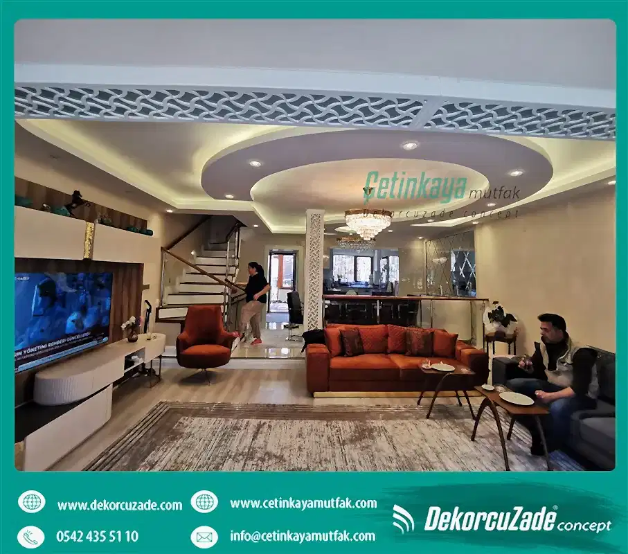 DEKORCUZADE  müşterilerimizden gelen talep üzerine, gerek konutlarında gerekse işyerlerinde dekorasyon calışmasi öncesi ücretsiz olarak mimarlık hizmeti sunuyor. Üç boyutlu olarak hazırladığımız çizimleri müşterilerimizin beğenisine sunduktan sonra da çok ince ve titiz çalışmayla uygulama yapıyoruz.Siz hayal edin biz gerçekleştirelim Gösterişiyle benzersiz, uyumuyla muhteşem size özel tasarımlar üretmek ve 3d tasarım yaparak ön aşamaları hatasız birşekilde görerek Çetinkaya tasarım detaylı bir çalişma yapmaktadır.