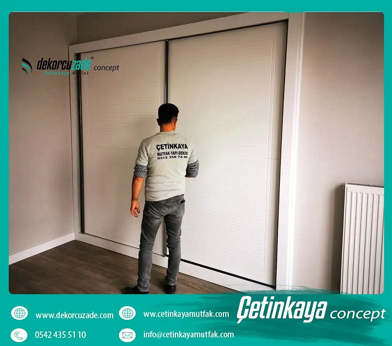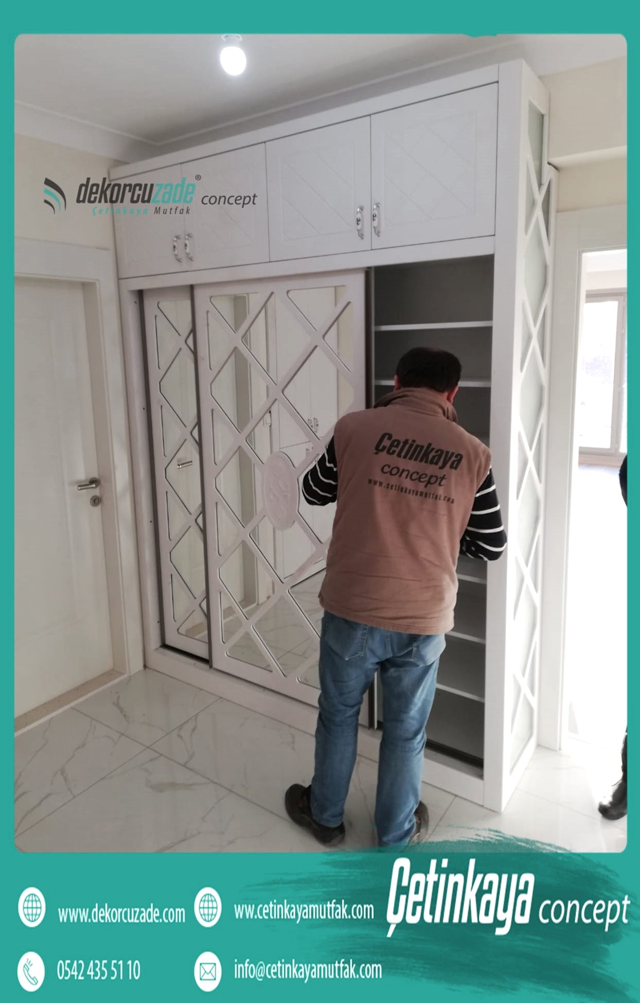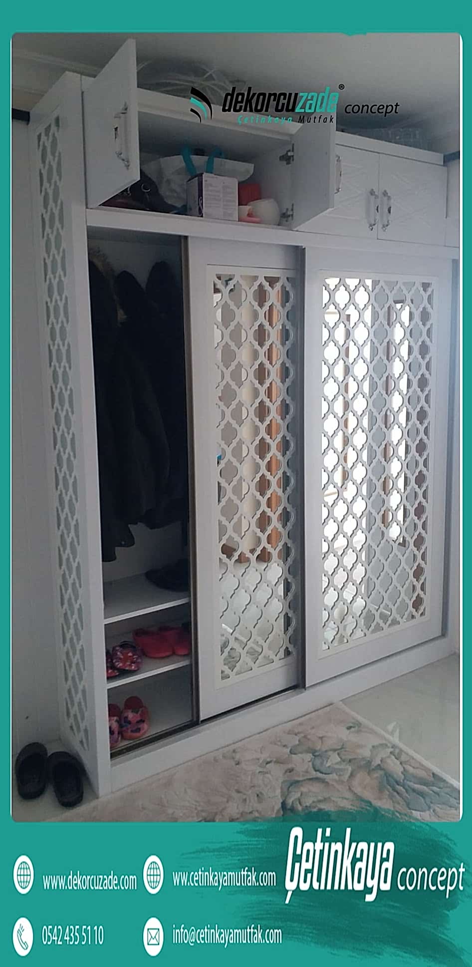 Tamamen sizin ihtiyaçlarınız esas alınarak, mimarlarımız tarafından tasarlanan raylı dolaplarımızda kendinizi bulacaksınız. Bize ihtiyaçlarınızı ve favori renklerinizi söyleyin, hayallerinizi biz gerçekleştirelim.